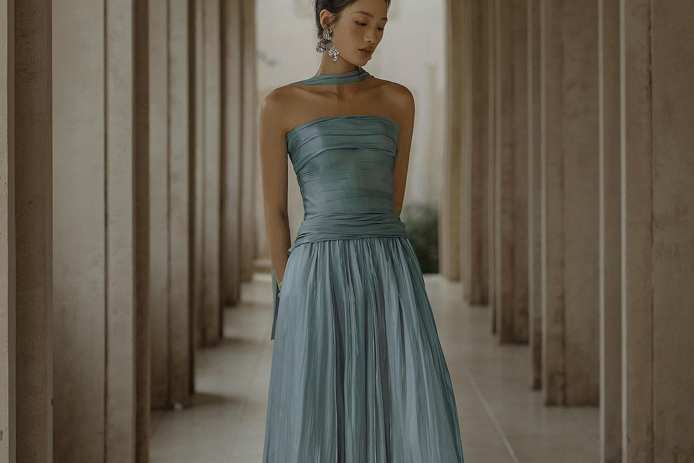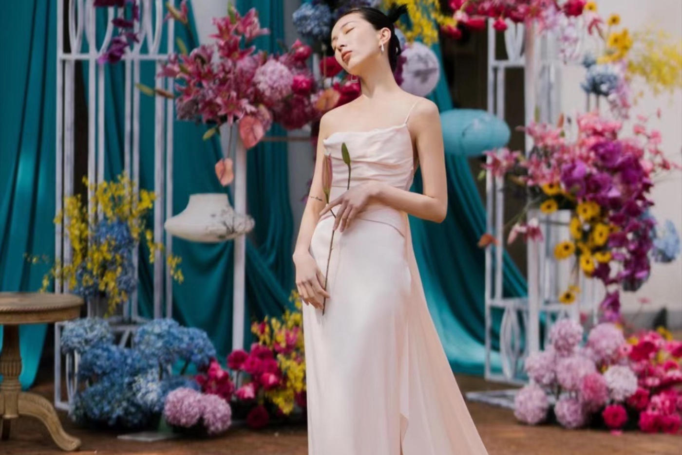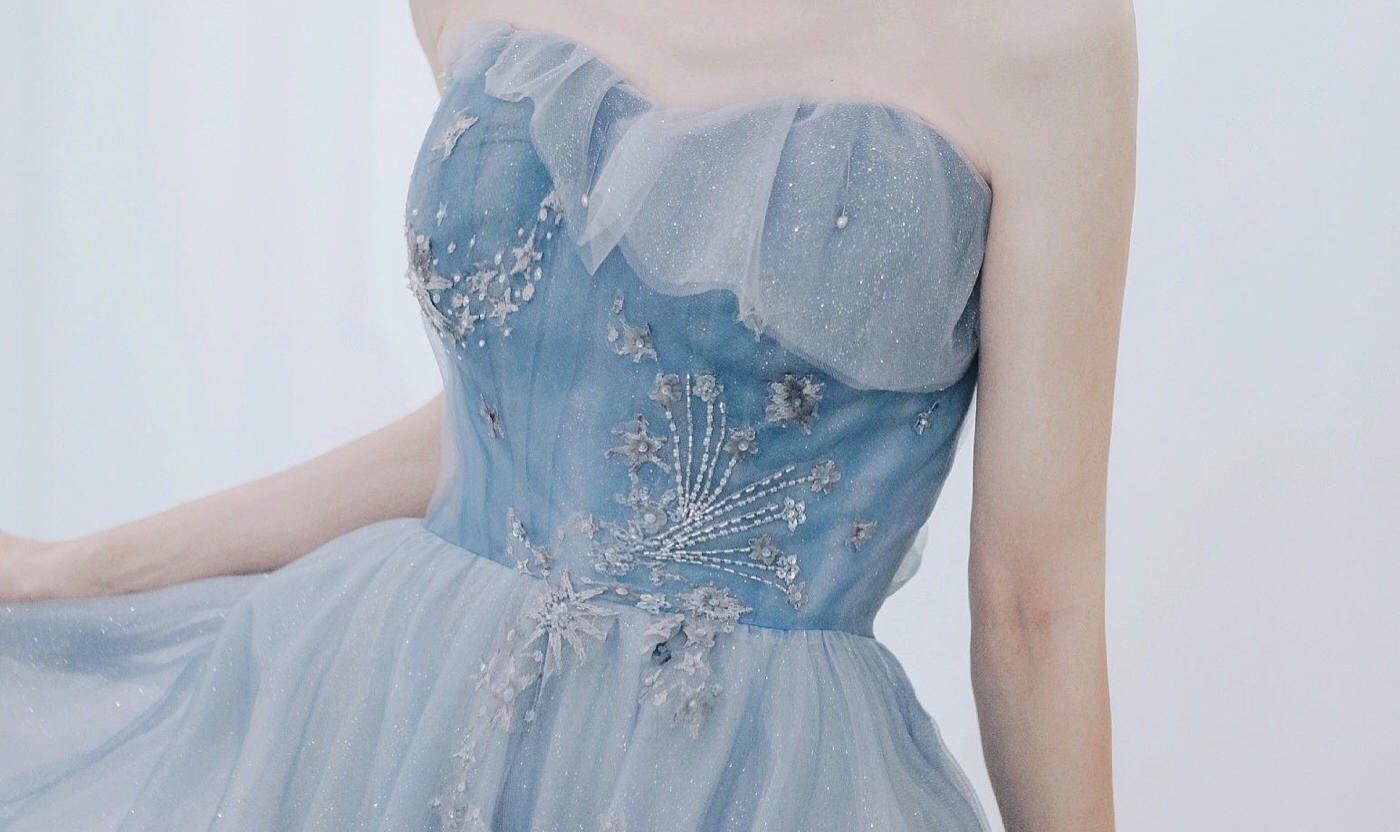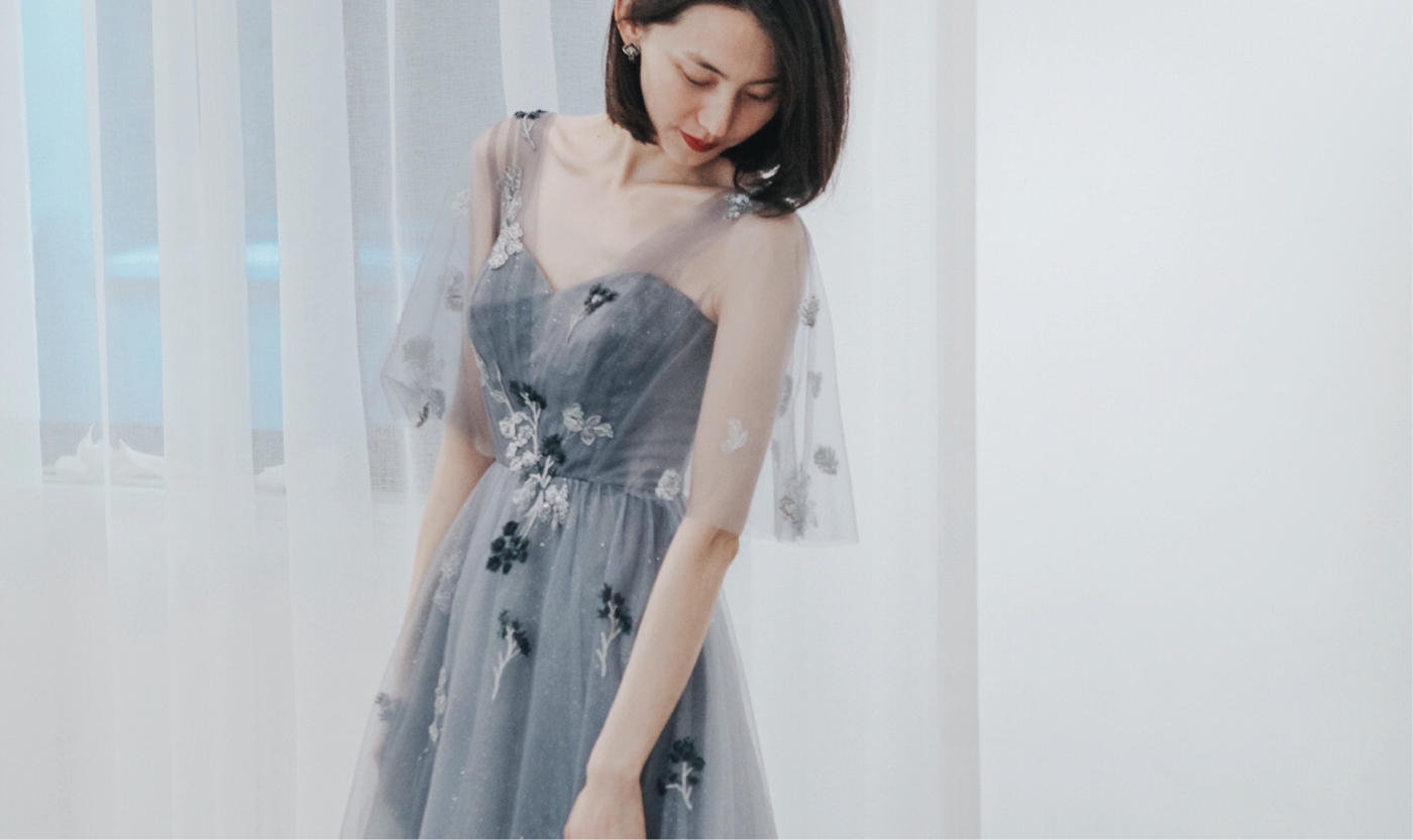 阳光明媚,水波温柔,一层层白云覆盖着我,踩在青草上,微风拂面,一切像雨水一样幸福。 可两穿的礼服, 单穿吊带雾霾蓝略显俏皮,适合跳舞、上台; 结合披肩,整体感觉温柔、大方。 适用场合:感恩服、敬酒服、after-party礼服[更多…]
